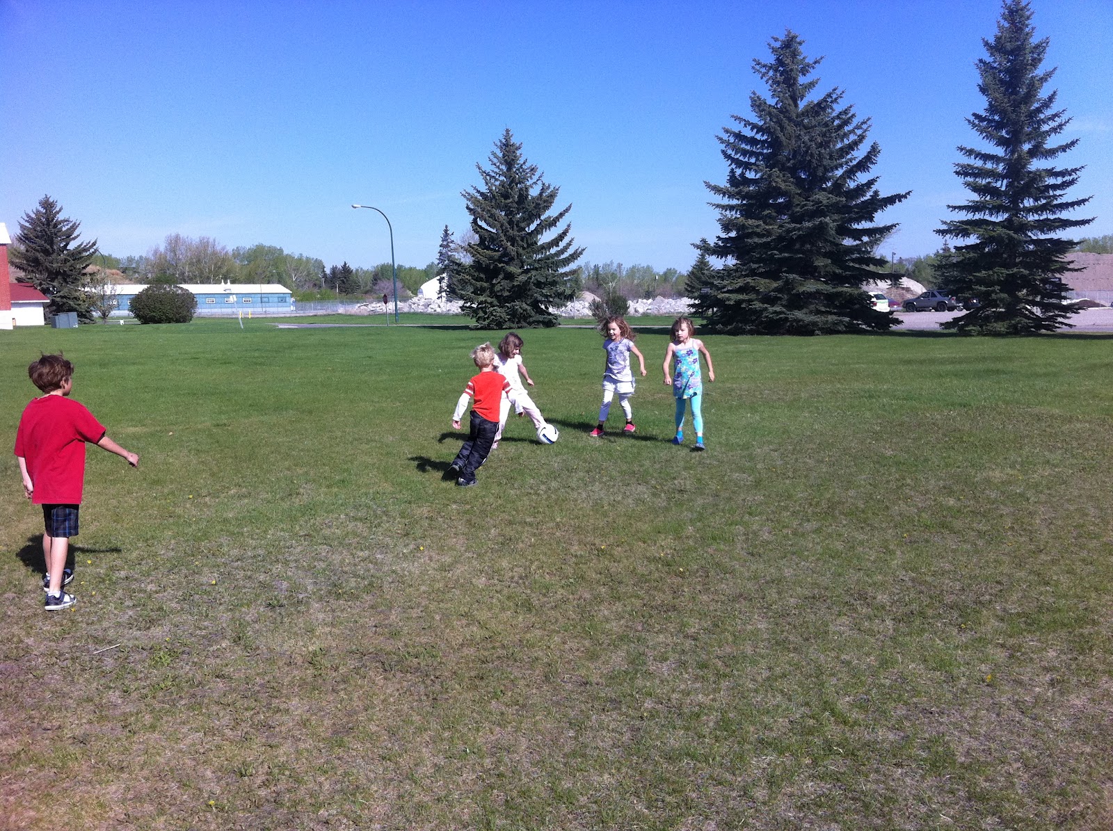 The morning started off with the K's and 1's. We had less people than expected so we spent some time on the park warming up our bodies and then played some Loose Caboose and no goalie soccer. We had so much fun. We talked about things we could work on as individuals and as a group for next class - and the things we are doing great! The kids were really insightful.